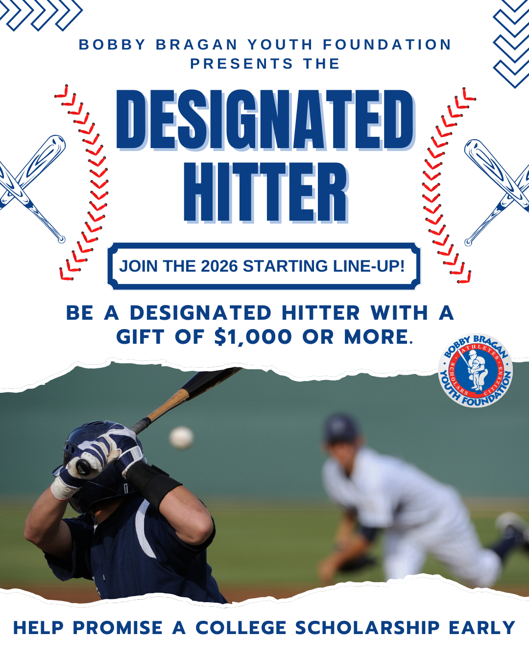 In baseball, a designated hitter steps up to the plate in a critical moment - ready to make an impact when it matters most. Becoming a Designated Hitter for the Bobby Bragan Youth Foundation is much the same.